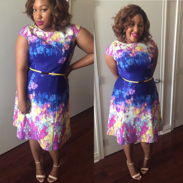 My dress by Adrianna Papell, shoes from Just Fab and belt from Forever 21 (old) similar one found Skinny Yellow Belt.